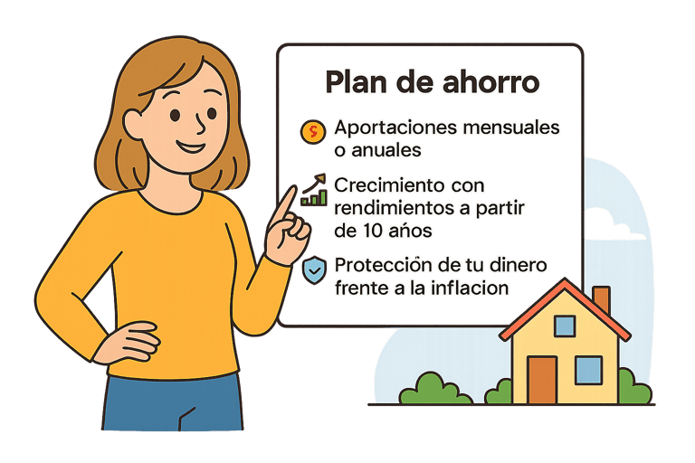 A diferencia de una cuenta de ahorro normal, este tipo de plan invierte tu dinero en instrumentos que te dan rendimientos a mediano y largo plazo (como seguros de vida con ahorro o fondos conservadores). Así, tu ahorro no solo crece por lo que tú aportas, sino también por los intereses que gana.